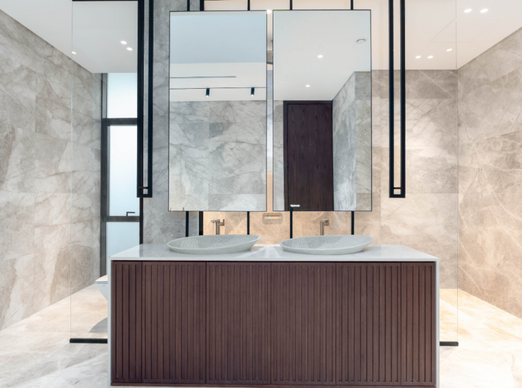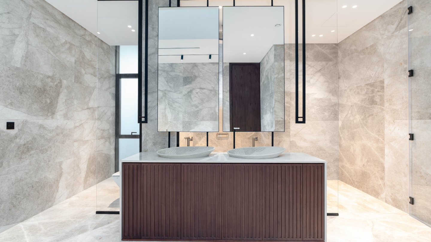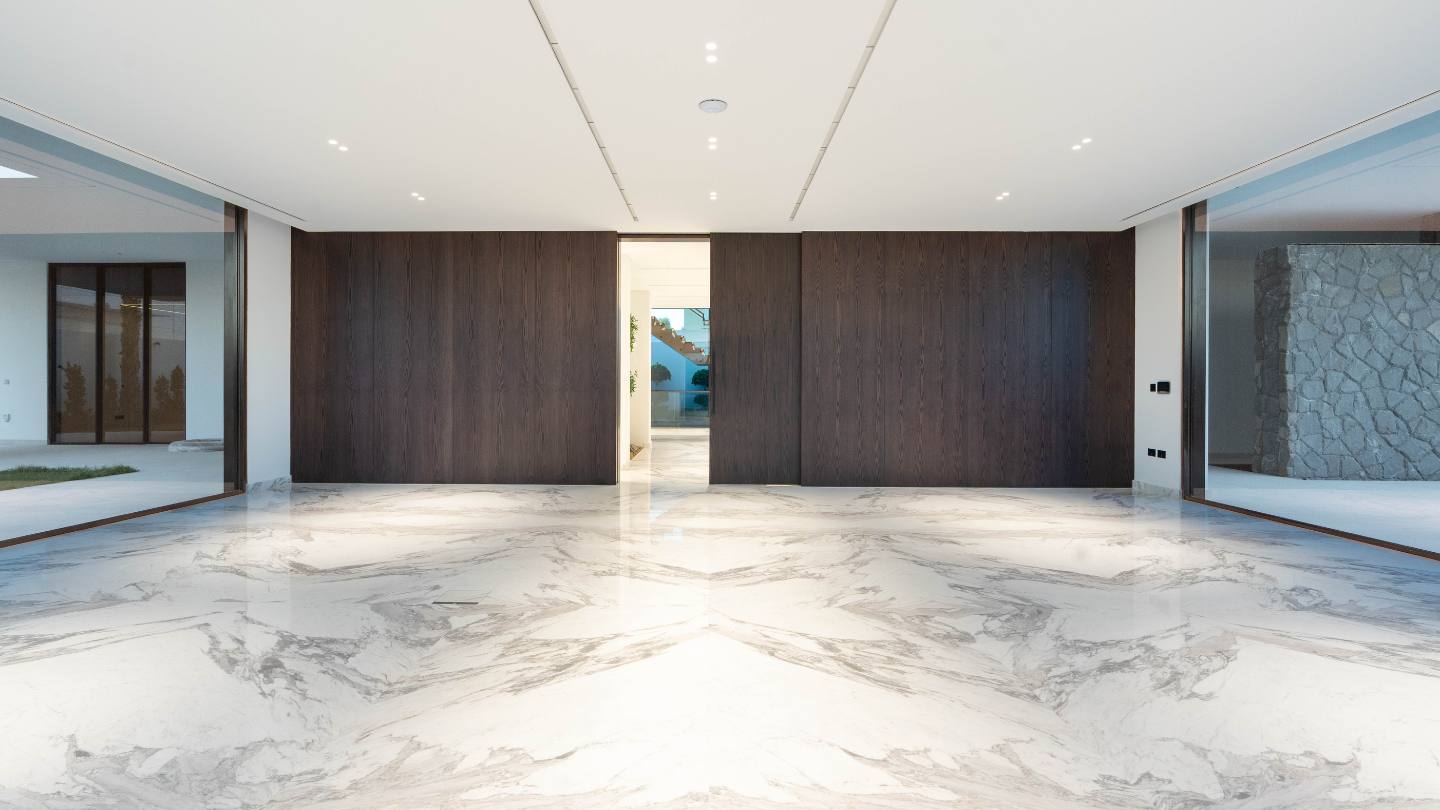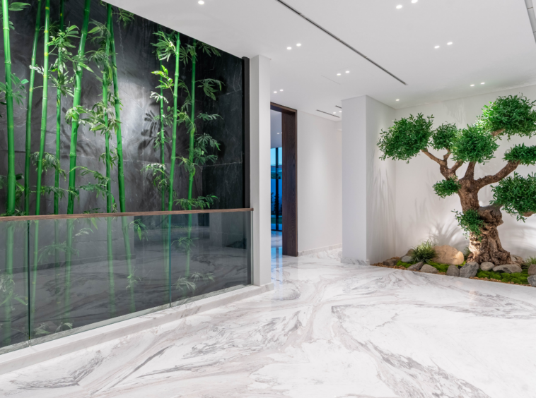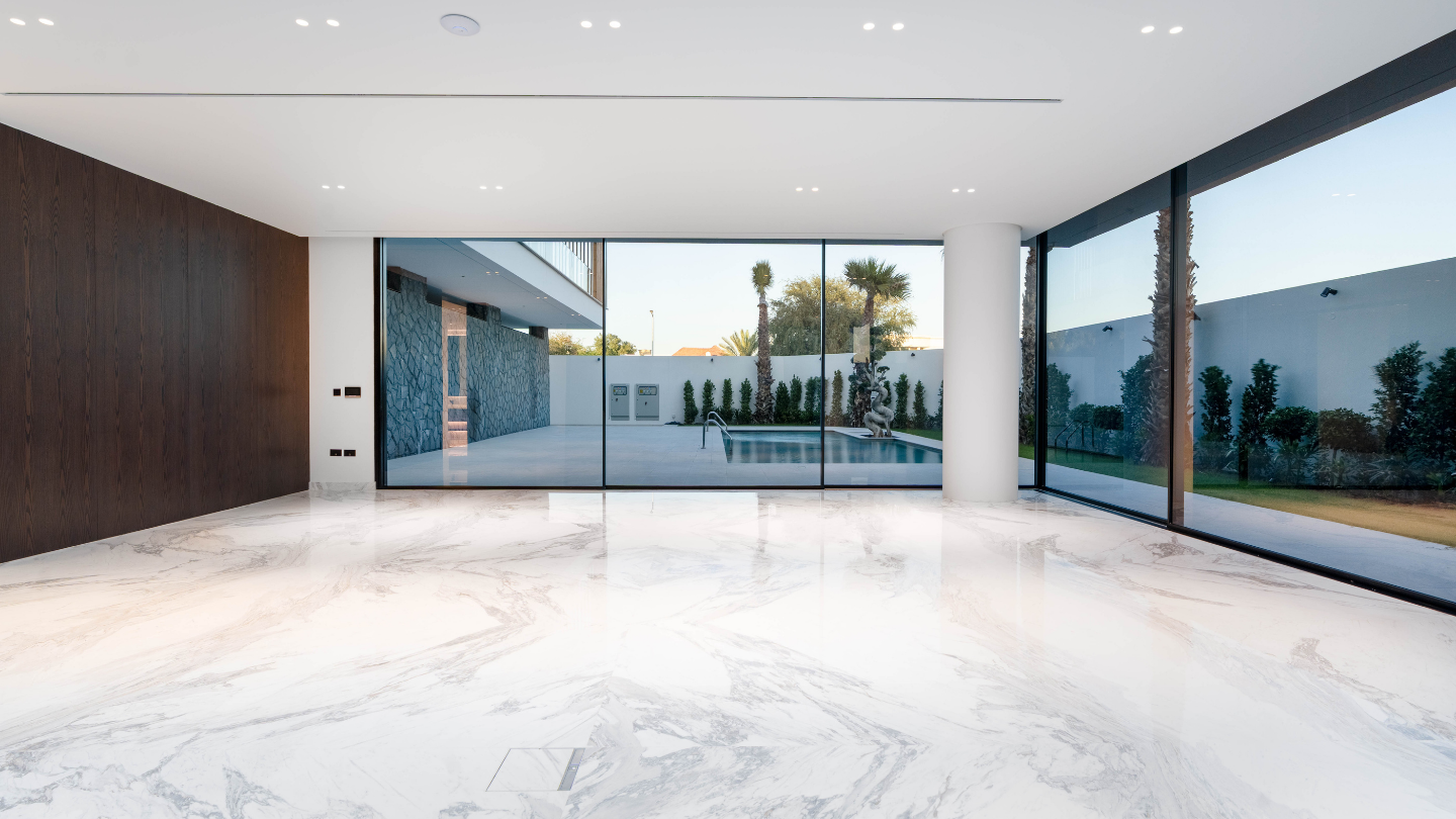 The villa boasts a show kitchen and a dirty kitchen by Poggenpohl, a custom safe in the master bedroom closet, and a 4-floor lift.